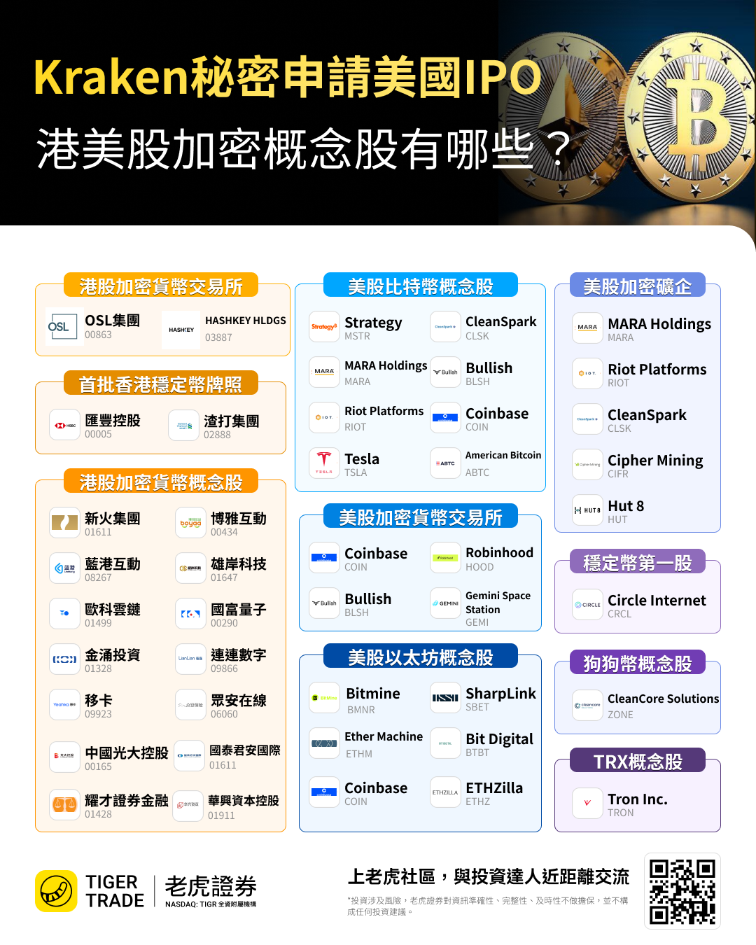 在市場情緒改善與政策環境逐步明朗下,交易所IPO題材再度受到關注。同時在香港特區政府發放了首批穩定幣牌照後,加密虎在開篇給大家整理了港美股加密貨幣概念股,感興趣的小虎可以加入自選哦~~~
