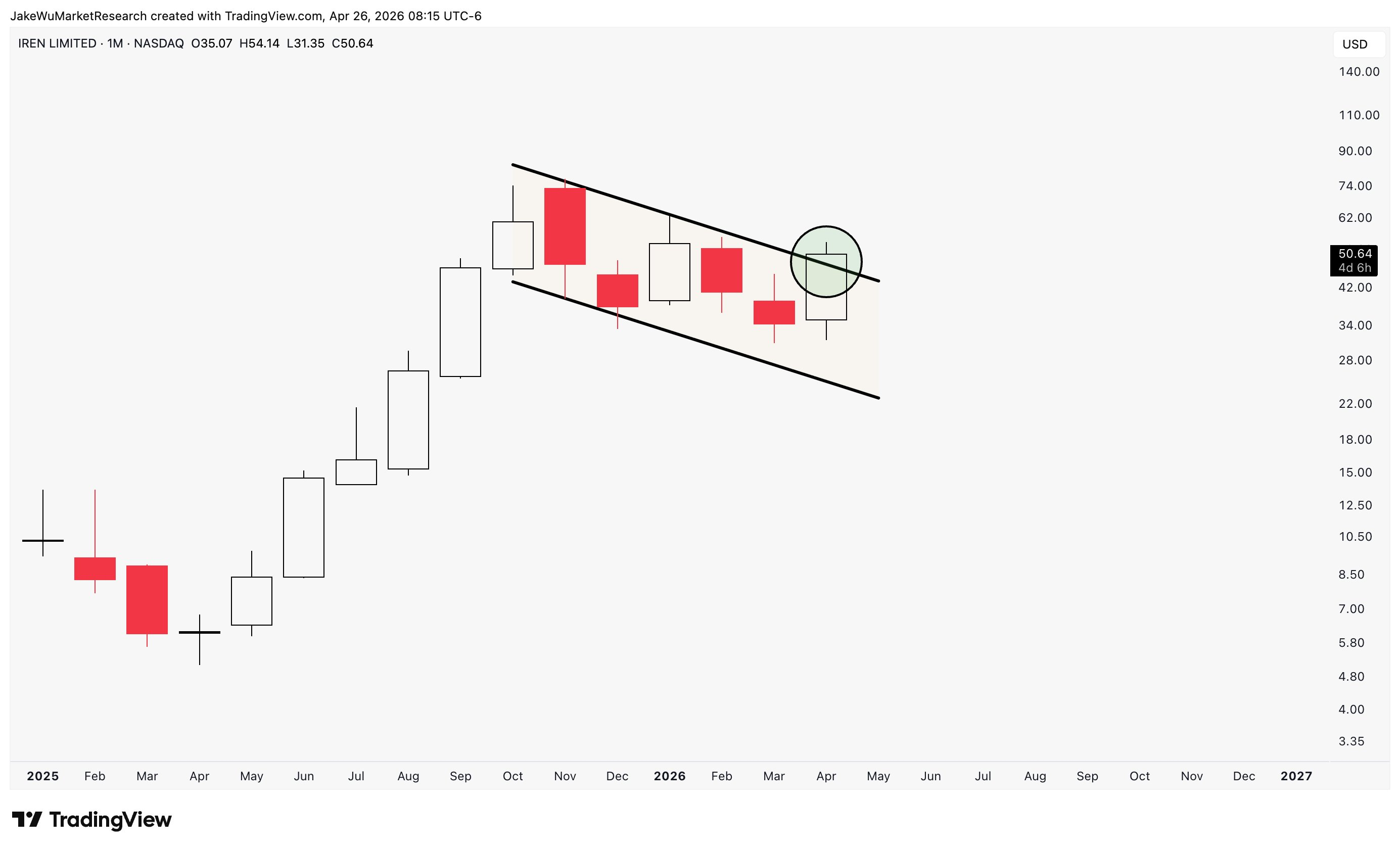 $IREN Ltd(IREN)$Pretty clean bull flag setup on the monthly candle chart.