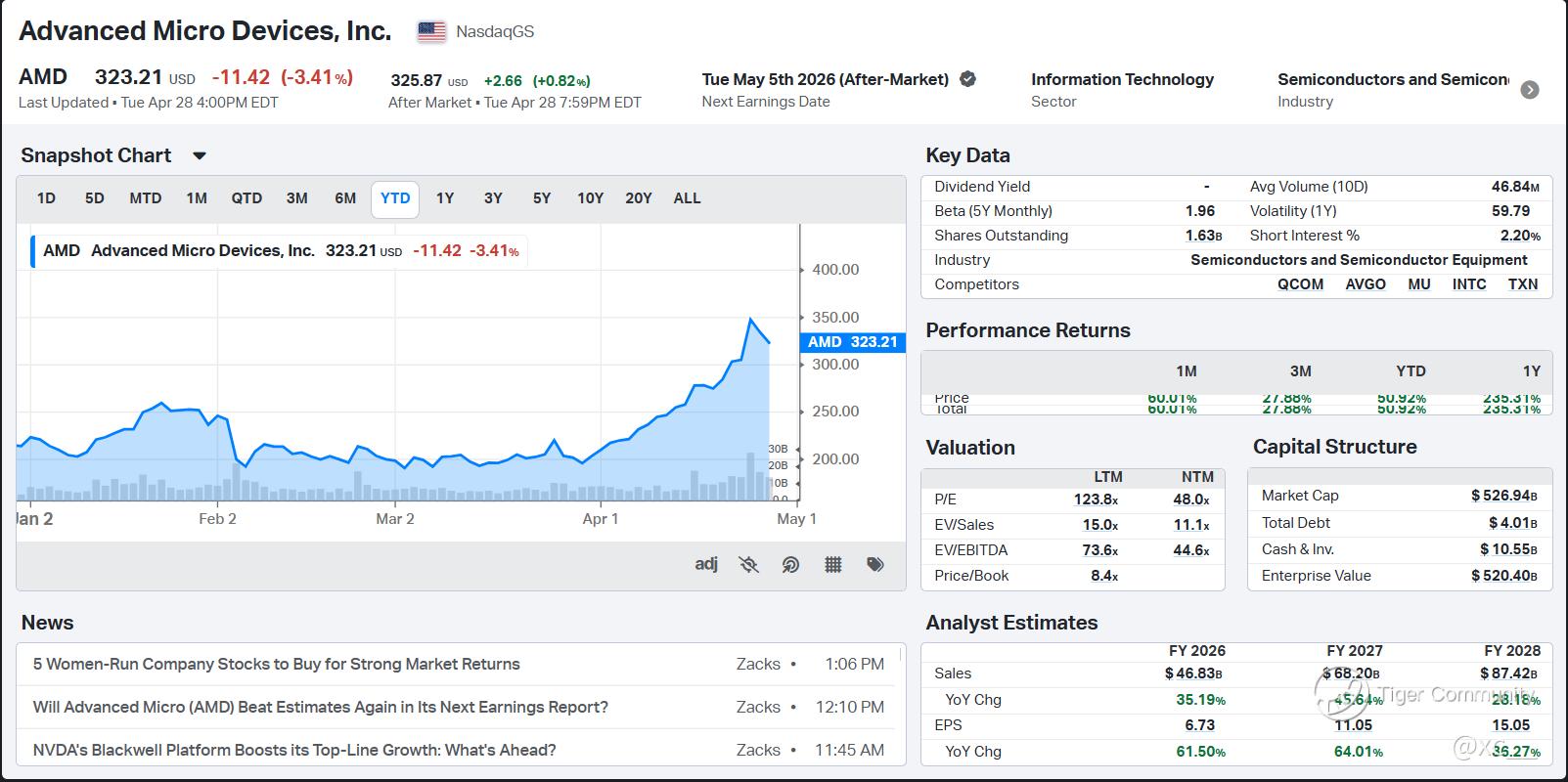 $Advanced Micro Devices(AMD)$ Pulse: Cathie Wood's ARK just torched 215,643 $AMD shares (~$75M) on April 24 after a blistering 25% weekly rally (13.9% that day), slashing its third-largest holding to $416M β pure profit-taking on a ~70% monthly surge to $347.81 close. With RSI screaming overbought at 80-88 across charts (GuruFocus 80.25, Moneycontrol 88.93, AltIndex 88.6), this isn't panic; it's rotation from semis amid NVDA dominance. ARK's ETF lags hard (-1.76% YTD vs. S&P +4.67%), but $AMD's MACD bullish crossover and key support at $347 scream "buy the fear" in this 2026 AI chip cycle!