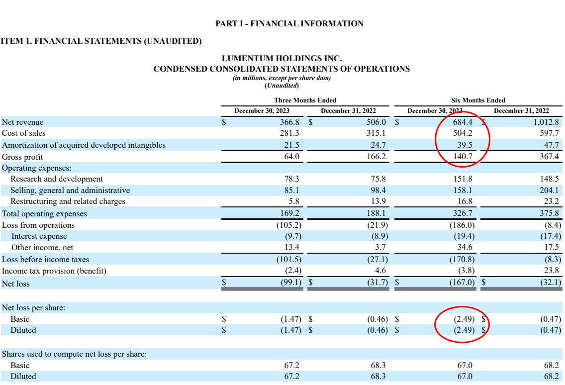 But, LITE was losing $100,000,000+ per quarter (see financials)