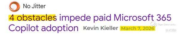 Just this March 2026, influential analyst notes flagged that Microsoft 365 Copilot adoption was not scaling as quickly as anticipated. (see below)