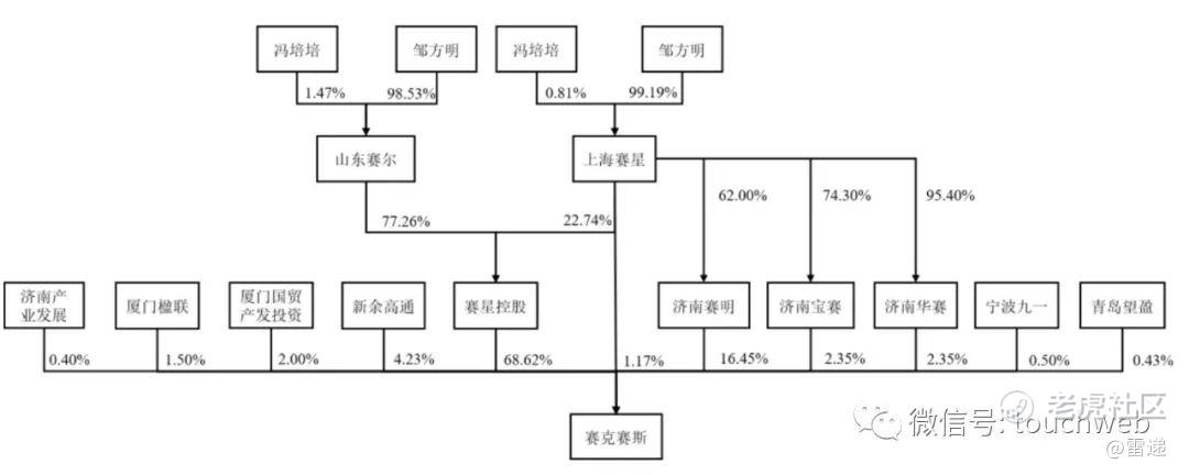 IPO前,鄒方明分別持有上海賽星和山東賽爾99.19%和98.53%股份,通過山東賽爾和上海賽星控制的賽星控股控制賽克賽斯68.62%股權;