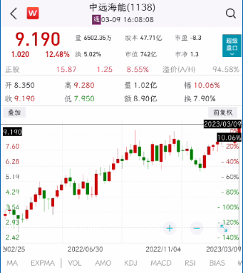業務復甦背景下中遠海能一舉扭虧爲盈。公司預告2022年最多盈利15.8億元人民幣,而2021年公司還虧損近50億元。去年前三季度,公司淨利大增44%達到6.4億元人民幣。