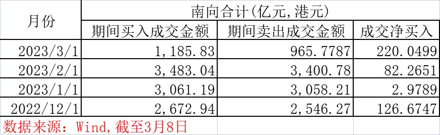 另一方面,南向資金的活躍度較年初有了明顯轉變。3月以來,隨着港股回撤,南向資金累計淨流入超過220億港元,較今年1月和2月合計還多,顯示出南向資金對當下點位港股看多。