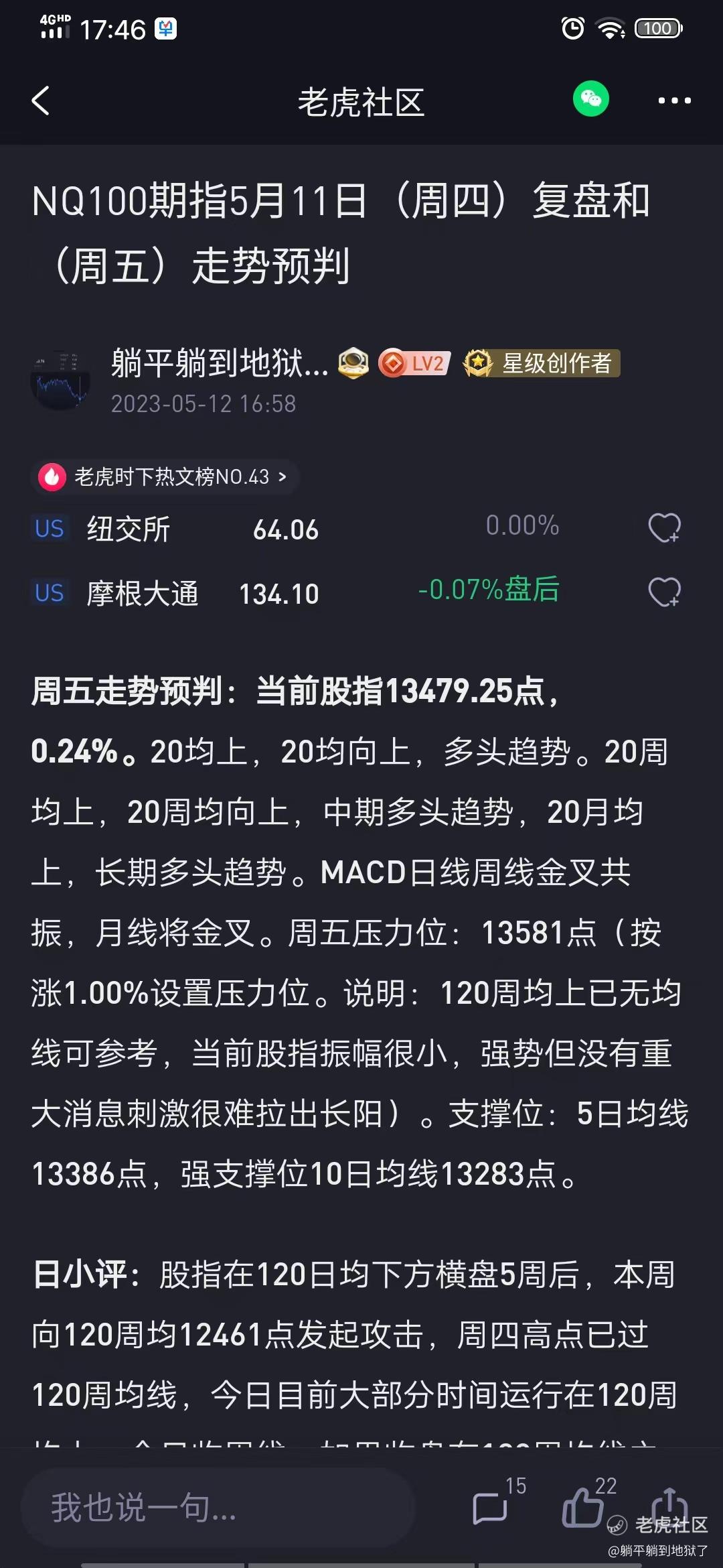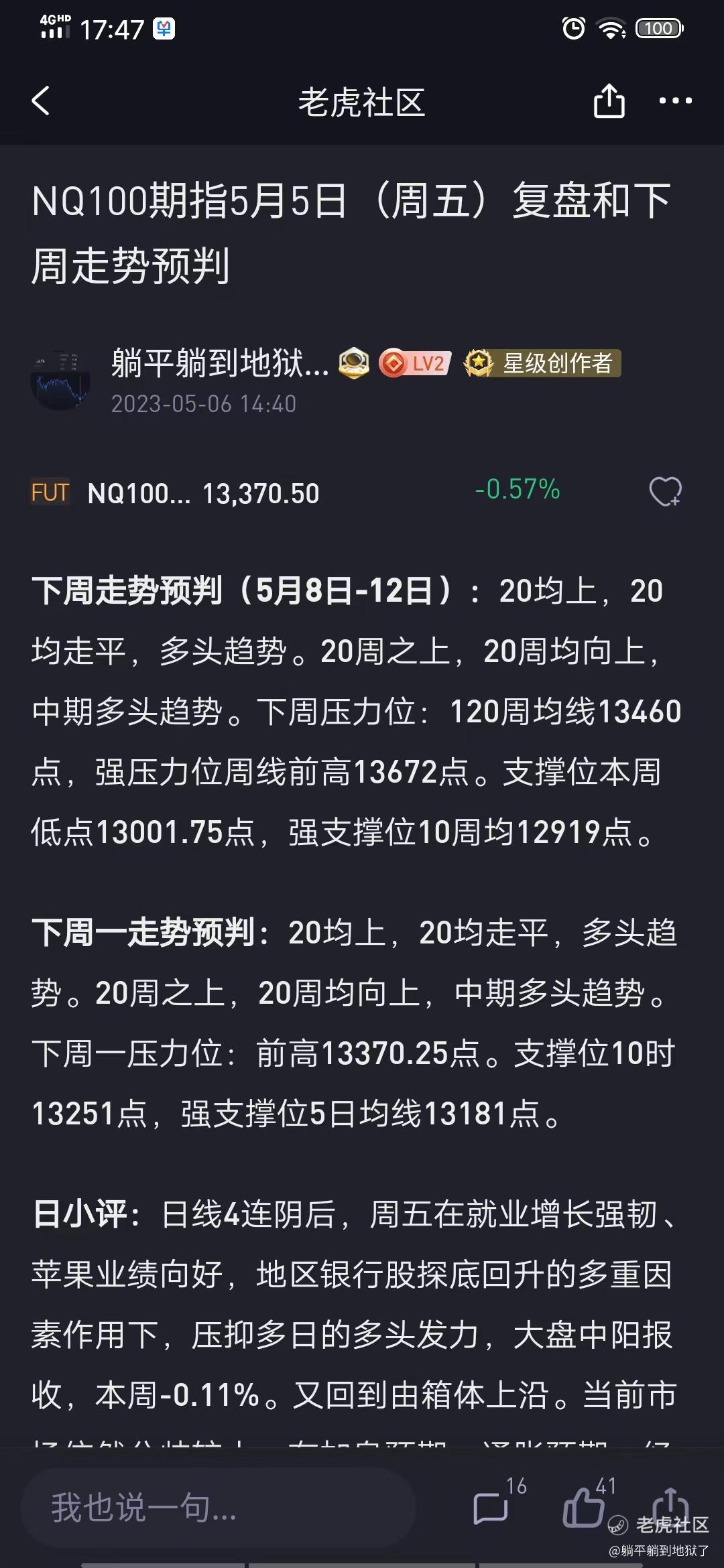 NQ100期指5月12日(週五)覆盤和(下週)走勢預判