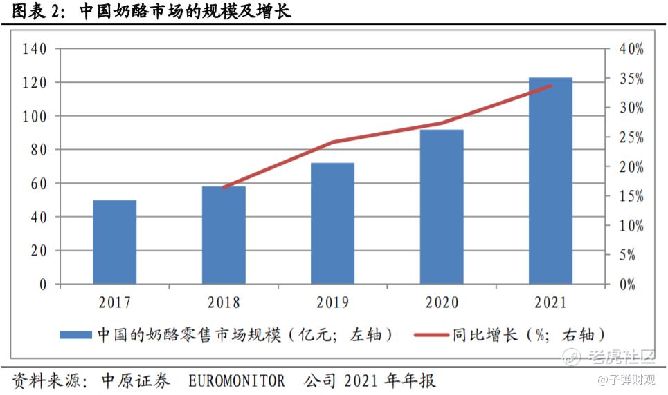 奶酪作爲乳製品行業新興領域,是典型的高增長藍海賽道。雖然目前整體市場空間較小,但隨着西方飲食文化在國內逐漸普及,市場想象空間廣闊。