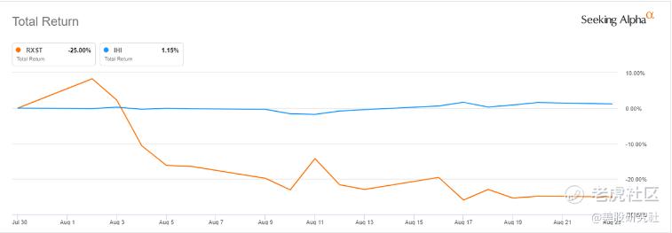 RxSight (RXST)在7月份首次公開募股,發行740萬股普通股,每股16美元。然而,從那以後,股票表現一直不如大盤,如下圖所示。