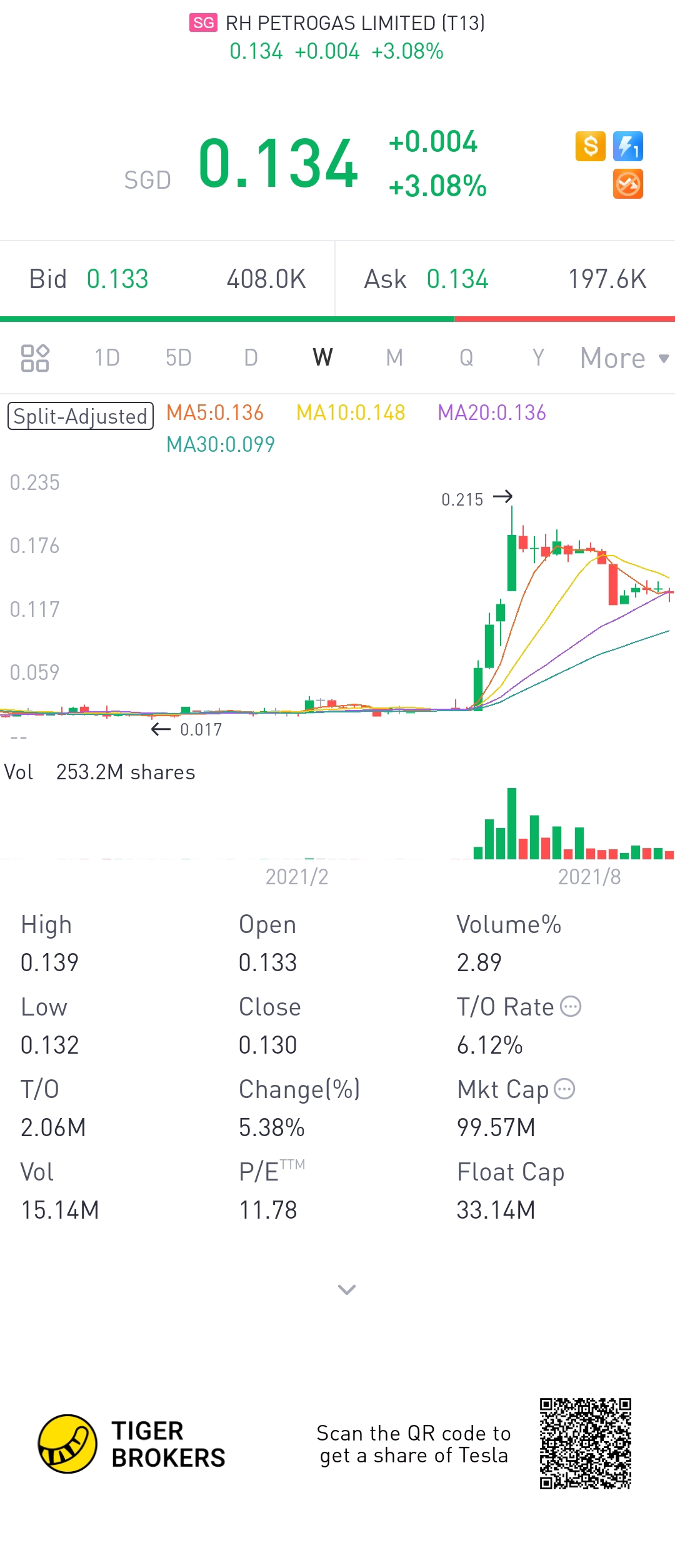 $RH PETROGAS LIMITED(T13.SI)$good chance to climb bk to above 140 with bad news subsiding