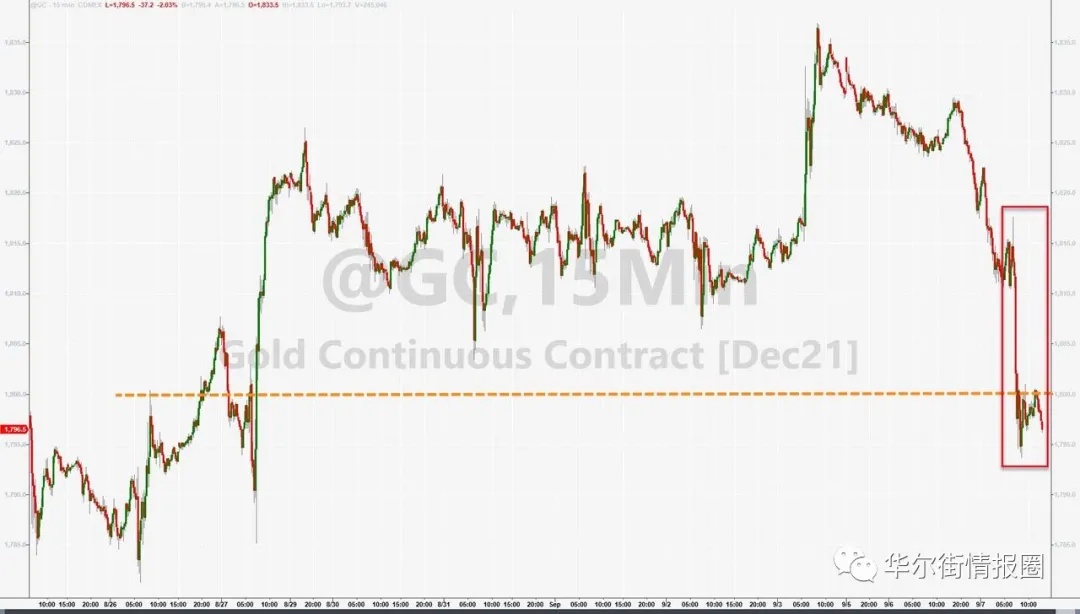 COMEX最活躍黃金期貨合約北京時間9月7日22:02一分鐘內買賣盤面瞬間成交5273手,交易合約總價值9.52億美元;22:04一分鐘內買賣盤面瞬間成交3889手,交易合約總價值7.00億美元;22:15一分鐘內買賣盤面瞬間成交2227手,交易合約總價值4.00億美元。