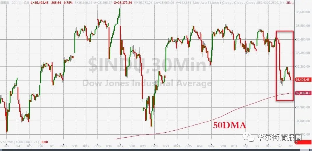 * 道瓊斯指數跌幅甚至達到了0.76%,爲8月18日以來的最大單日跌幅。