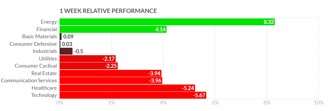 Weekly Sectors performance, Chart from https://finviz.com/