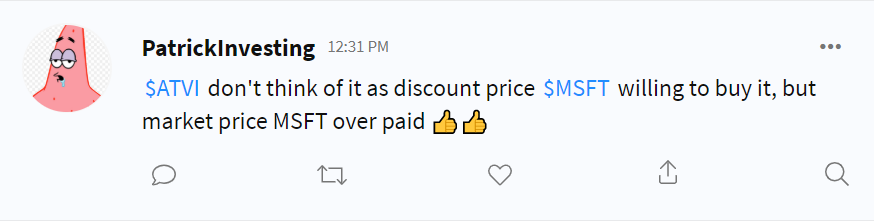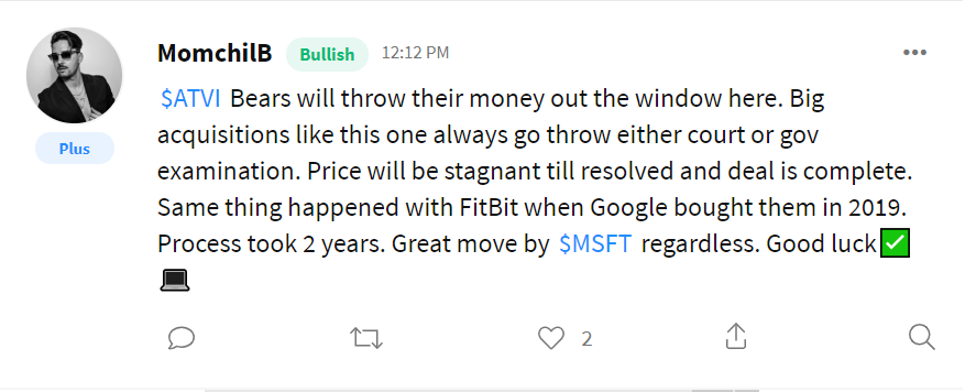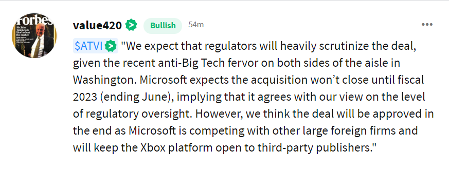 Many netizens have their own opinions on this acquisition $Microsoft(MSFT)$ $Activision Blizzard(ATVI)$ attaches below. After you read this, please tell me your opinion!!! I really appreciate it!!!