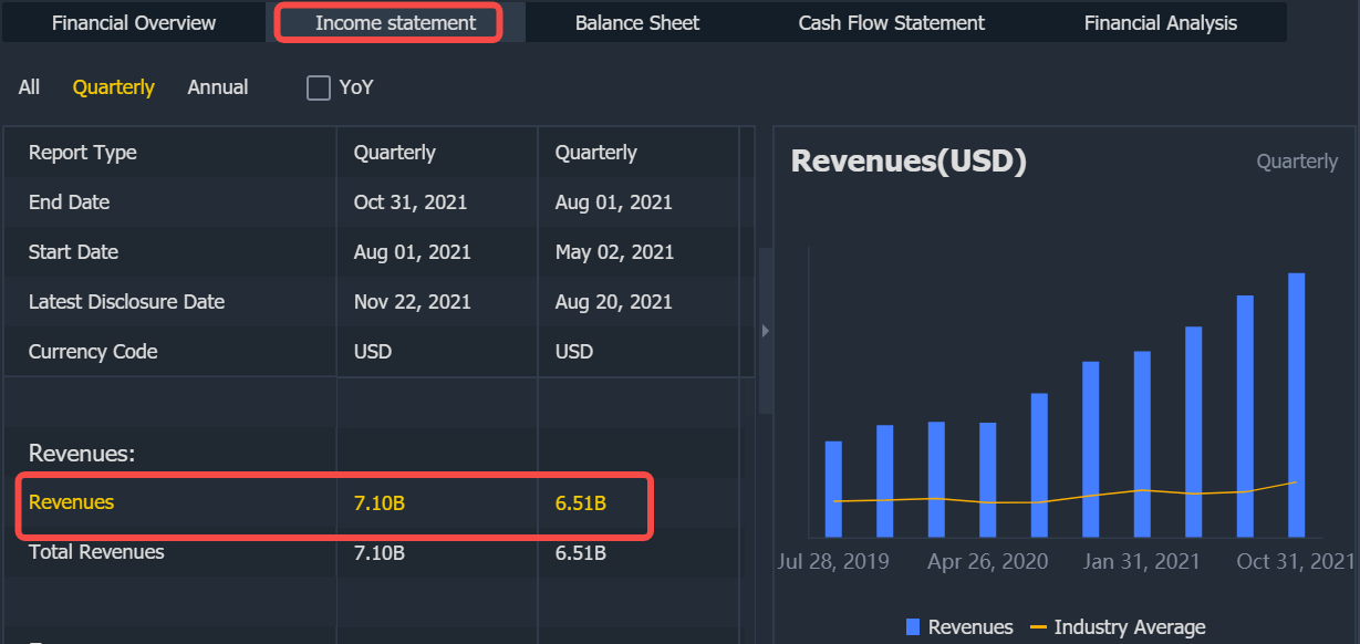 Let's check NVDA's financial report again: On November 18, 2021, Nvidia released its third-quarter financial report for the 2022 fiscal year ending on October 31.In the third quarter, the company's total revenue was US$7.1 billion, an increase of 50% y-o-y; net profit was $2.464 billion, an increase of 84% y-o-y.