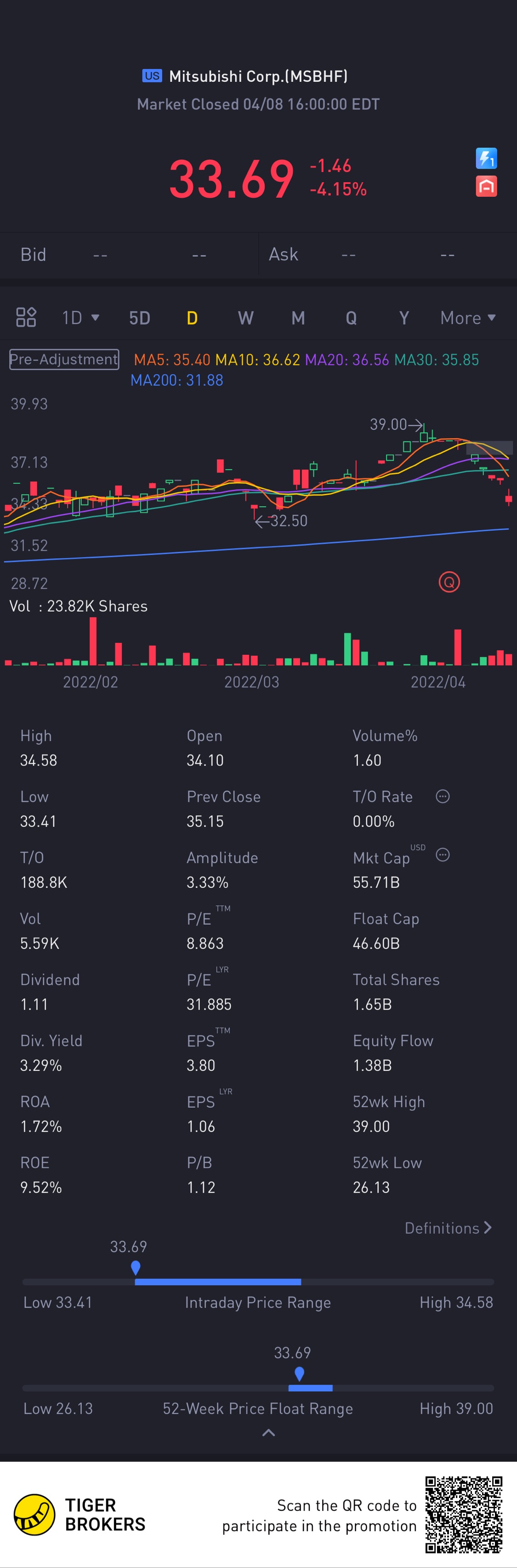 $Mitsubishi Corp.(MSBHF)$Why down ?