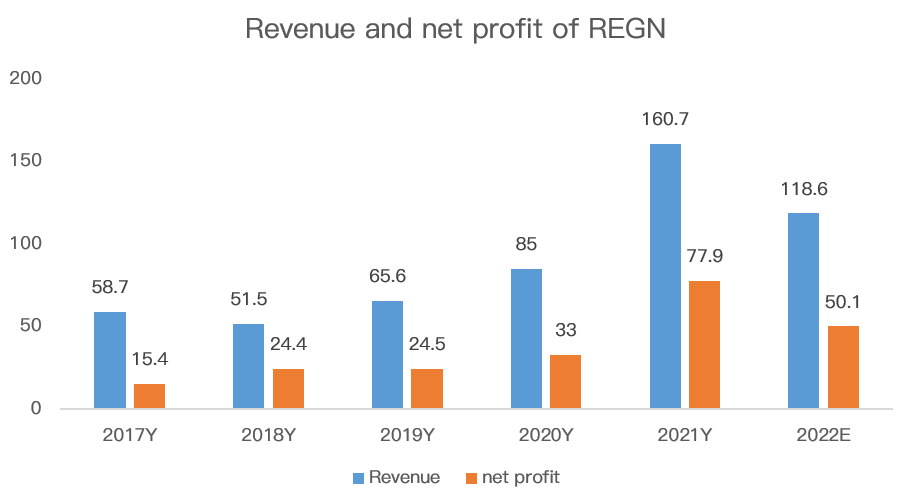Maybe it's because regenerant relies heavily on Eylea, a blockbuster product, and the profits generated by neocoronavirus antibody are unsustainable. Especially at the moment of Pfizer's mass production of specific drugs, Bloomberg analysts unanimously expect the profit to fall to $5 billion in 2022.