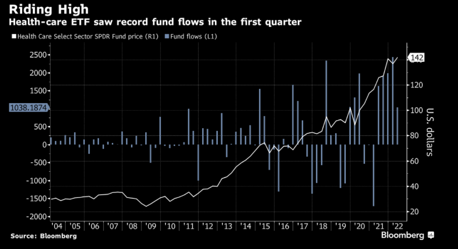 AbbVie's situation is similar to that of rebirth yuan, which will not be repeated here. According to Bloomberg's statistics, the healthcare ETF received a record inflow of funds in the first quarter:
