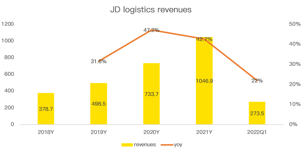 In particular, JD logistics, compared with the growth rate of 40% + in 2020 and 2021, the rate of 22% can be called a cliff decline.