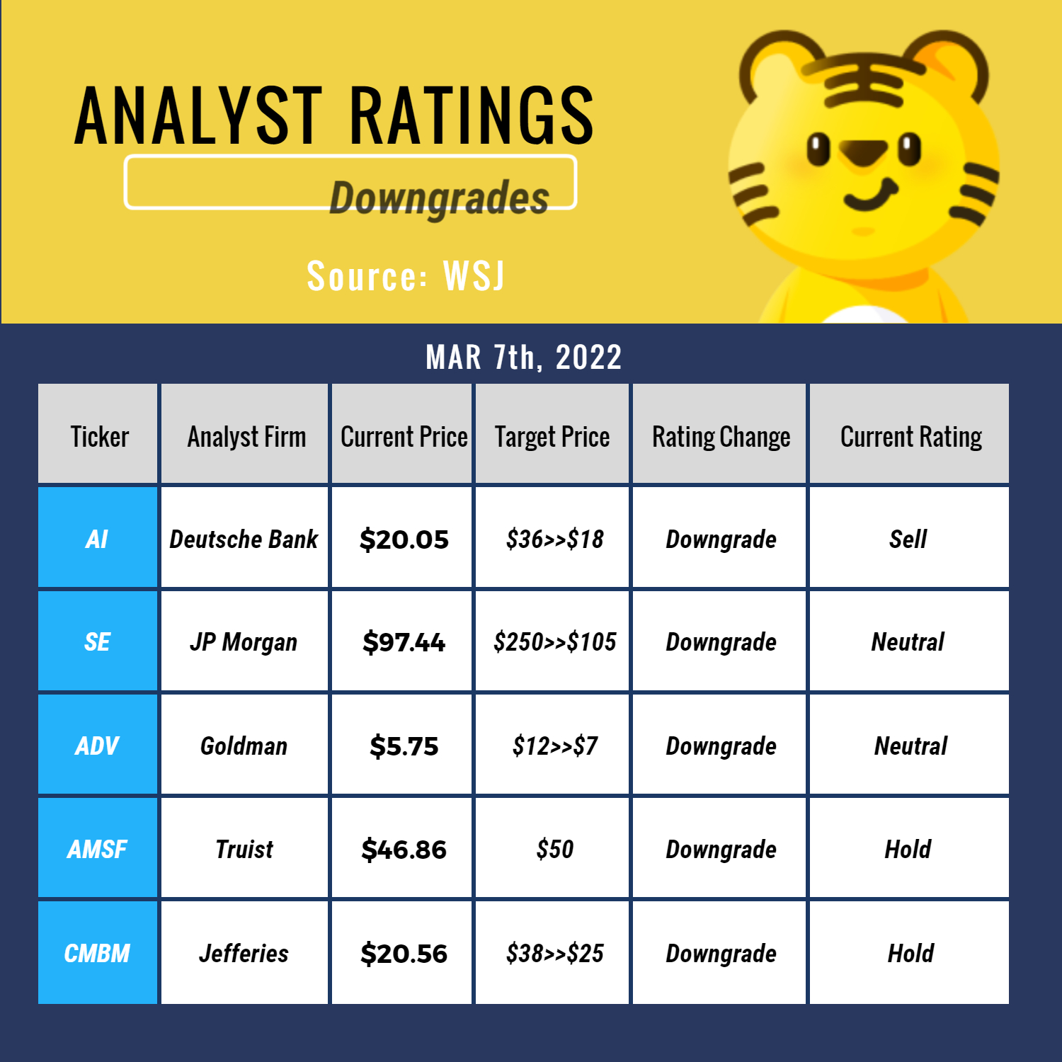 Top 5 Downgrades are: $C3.ai, Inc.(AI)$ $Sea Ltd(SE)$ $Advantage Solutions Inc.(ADV)$ $Amerisafe Inc(AMSF)$ $Cambium Networks(CMBM)$