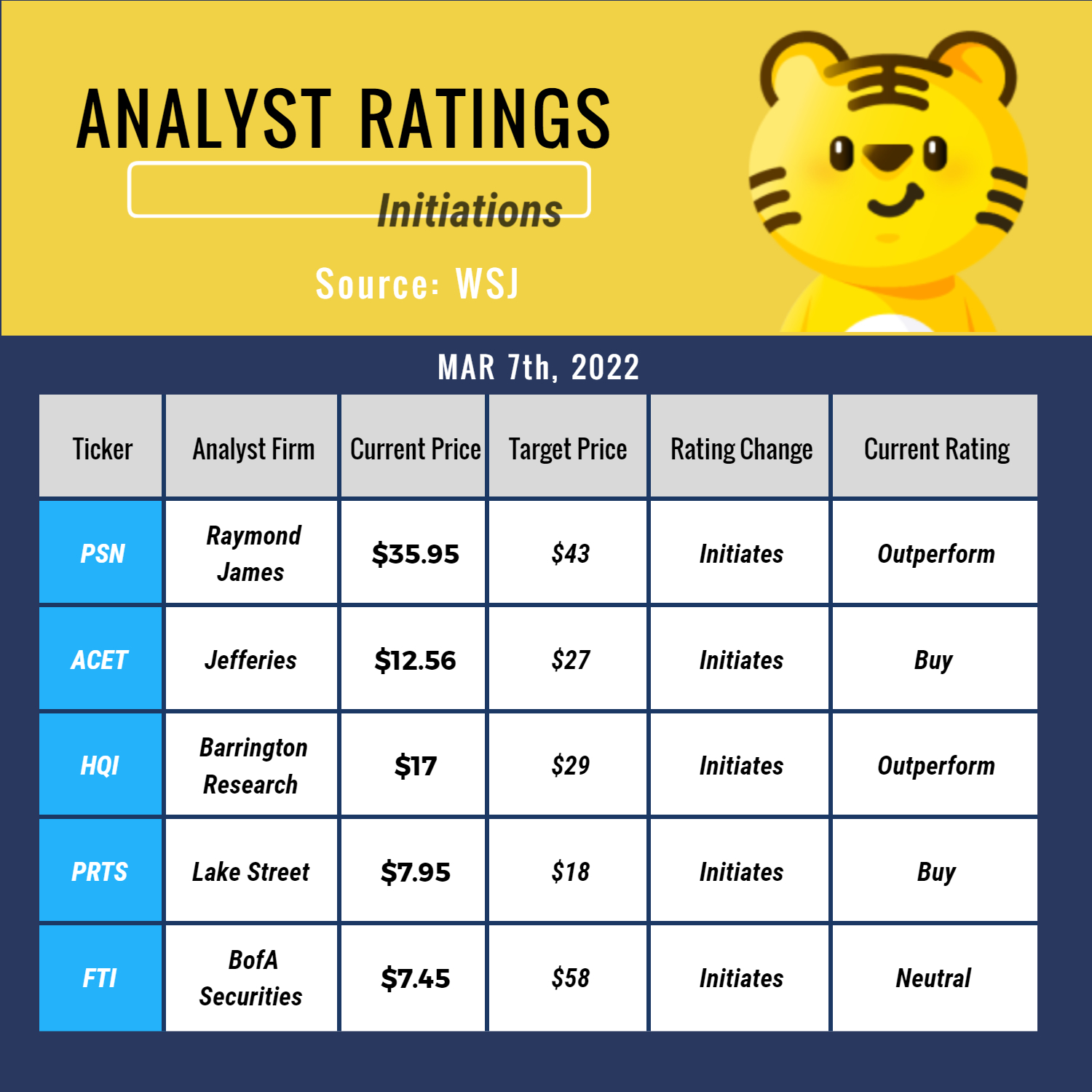 Top 5 Initiations are: $Parsons Corp(PSN)$ $Adicet Bio, Inc.(ACET)$ $HireQuest, Inc.(HQI)$ $U.S. Auto Parts Network(PRTS)$ $FMC Technologies Inc(FTI)$
