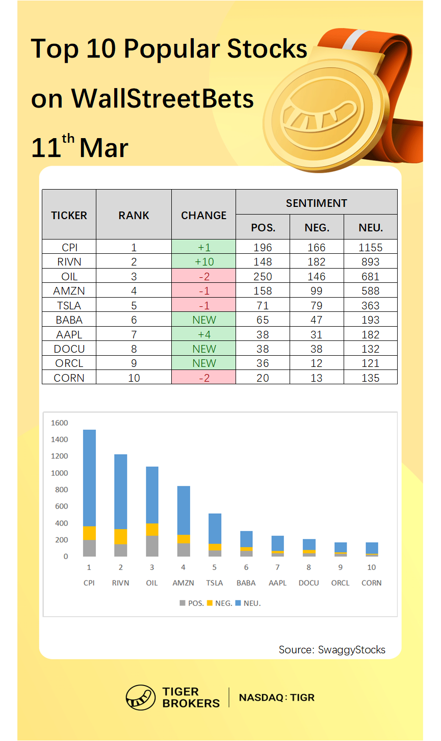 $IQ Real Return ETF(CPI)$ $Rivian Automotive, Inc.(RIVN)$ $iPath Pure Beta Crude Oil ETN(OIL)$ $Amazon.com(AMZN)$ $Tesla Motors(TSLA)$ $Alibaba(BABA)$ $Apple(AAPL)$ $Docusign(DOCU)$ $Oracle(ORCL)$ $Teucrium Corn Fund(CORN)$