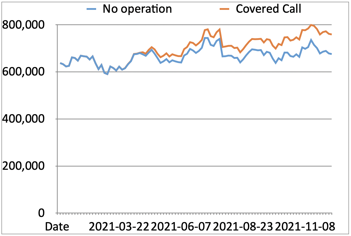If the covered call strategy is carried out, it will be operated once a week; if 100 shares are sold after the exercise, another 100 shares will be purchased on the next trading day.The final total assets is USD 728898 (include fees and costs).