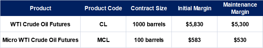 MCL shares the same delivery item as CL contract: Texas Light Sweet Crude Oil. However, the biggest difference is that contract unit value of MCL is significantly lower. While maintaining the same leverage, the corresponding margin requirement and the value of minimum fluctuation unit arelower.