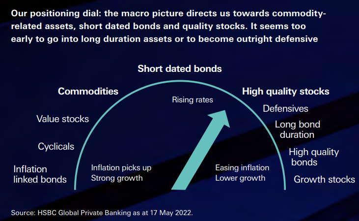 2. HCBC.HK believes the global growth will slow down but remain positive (with significant geographical differences),inflation will start to decline slowly, and US rate expectations are close to their peak. As a result, we remain invested but with a focus on quality, income and diversification. With a six-month view, we continue to balance value vs growth stocks,and cyclical vs defensive sectors.