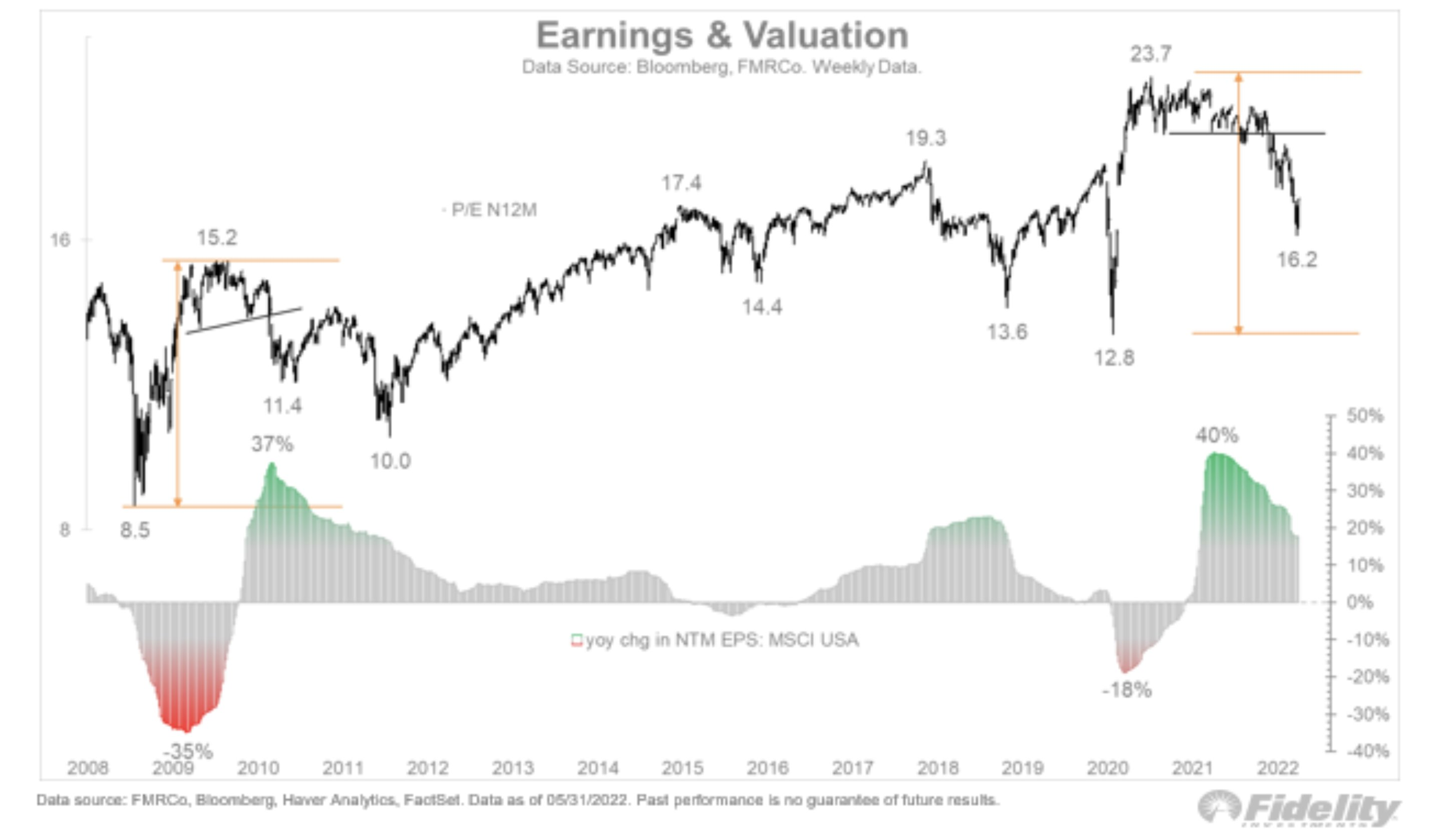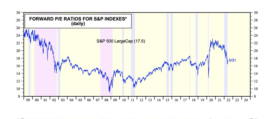 $S&P 500(.SPX)$ Forward PE still elevated relative to prior bear market lows (2002, 2009, 2011, 2015/16, 2018, 2020)