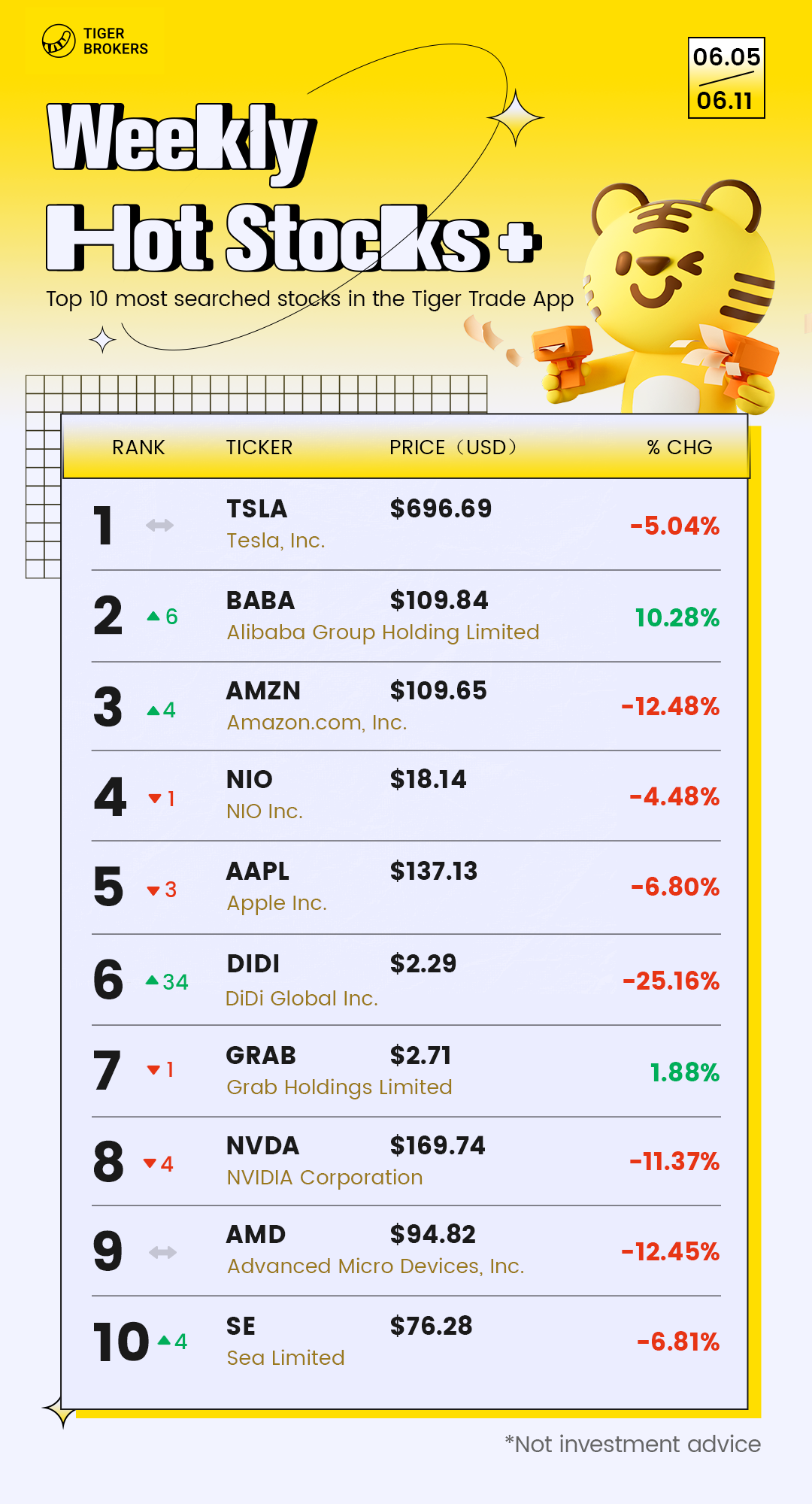 $Tesla Motors(TSLA)$ $Apple(AAPL)$ $NIO Inc.(NIO)$ $Alibaba(BABA)$ $Palantir Technologies Inc.(PLTR)$ $NVIDIA Corp(NVDA)$ $Grab Holdings(GRAB)$$Amazon.com(AMZN)$$Sea Ltd(SE)$ $DiDi Global Inc.(DIDI)$