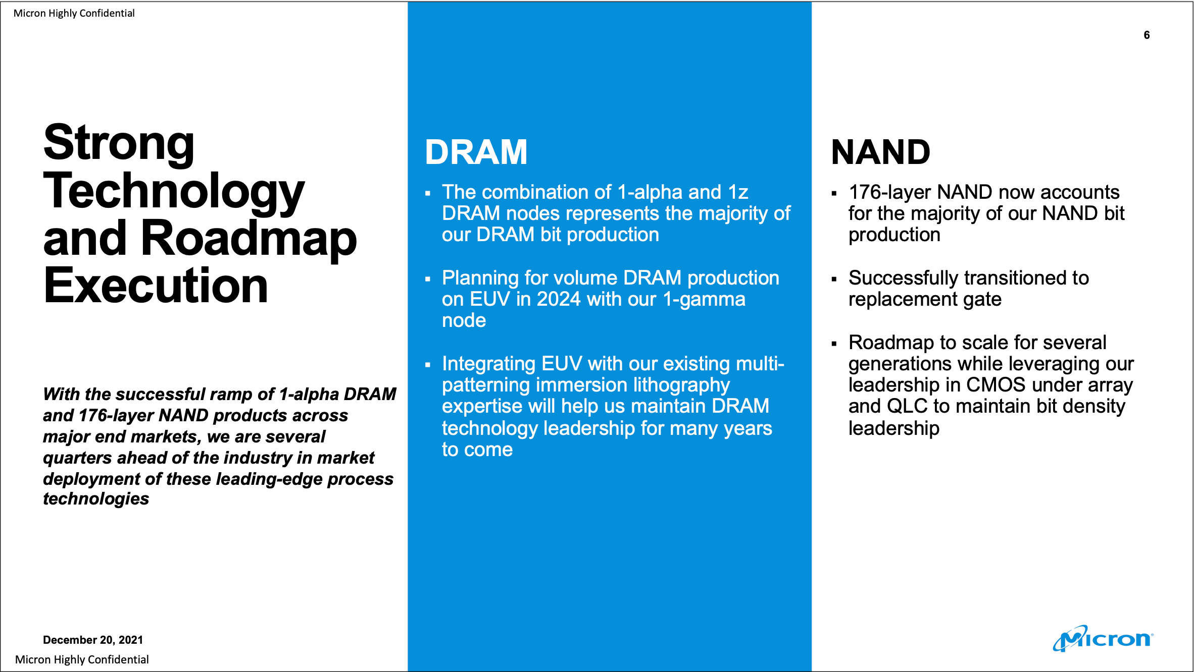 ·DRAM and NAND technology is the leading component in the semiconductor industry.