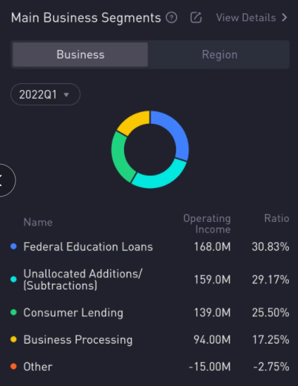 It operates through three segments: Federal Education Loans, Consumer Lending, and Business Processing. The company owns Federal Family Education Loan Program (FFELP) loans, provides customizable solutions for its clients and corporate liquidity portfolio services.