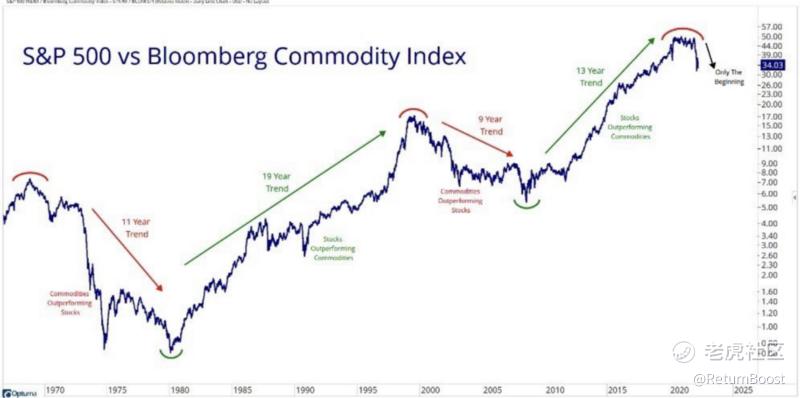 The chart below shows the ratio between the S&P500 and commodities. There are long periods when stocks outperform commodities and vice versa. In the early 2000s, Commodities outperformed stocks for 9 years but for the last 13 years, Commodities had no chance against Stocks. This pattern is not only true for stocks and commodities. Similar charts can be drawn for all other asset classes. A properly diversified portfolio should not miss allocation to commodities.