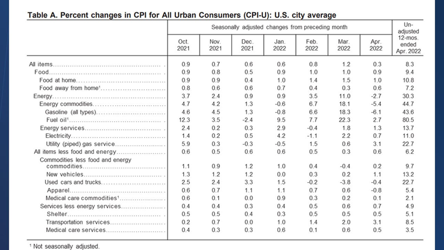 seasonally adjusted basis after rising 1.2% in March. Over the last year, inflation for all items stood at 8.3%, non-seasonally adjusted. The year-over-year number (8.3%) is what is most focused on by investors, politicians, and journalists.