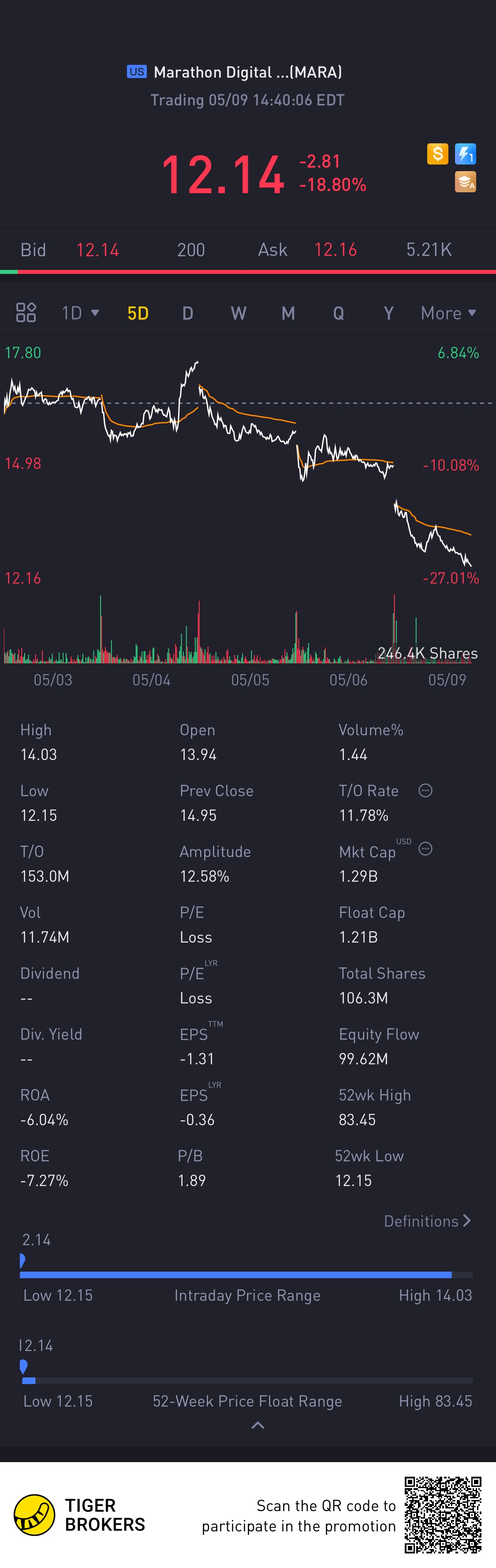 $Marathon Digital Holdings Inc(MARA)$Worth the dip?
