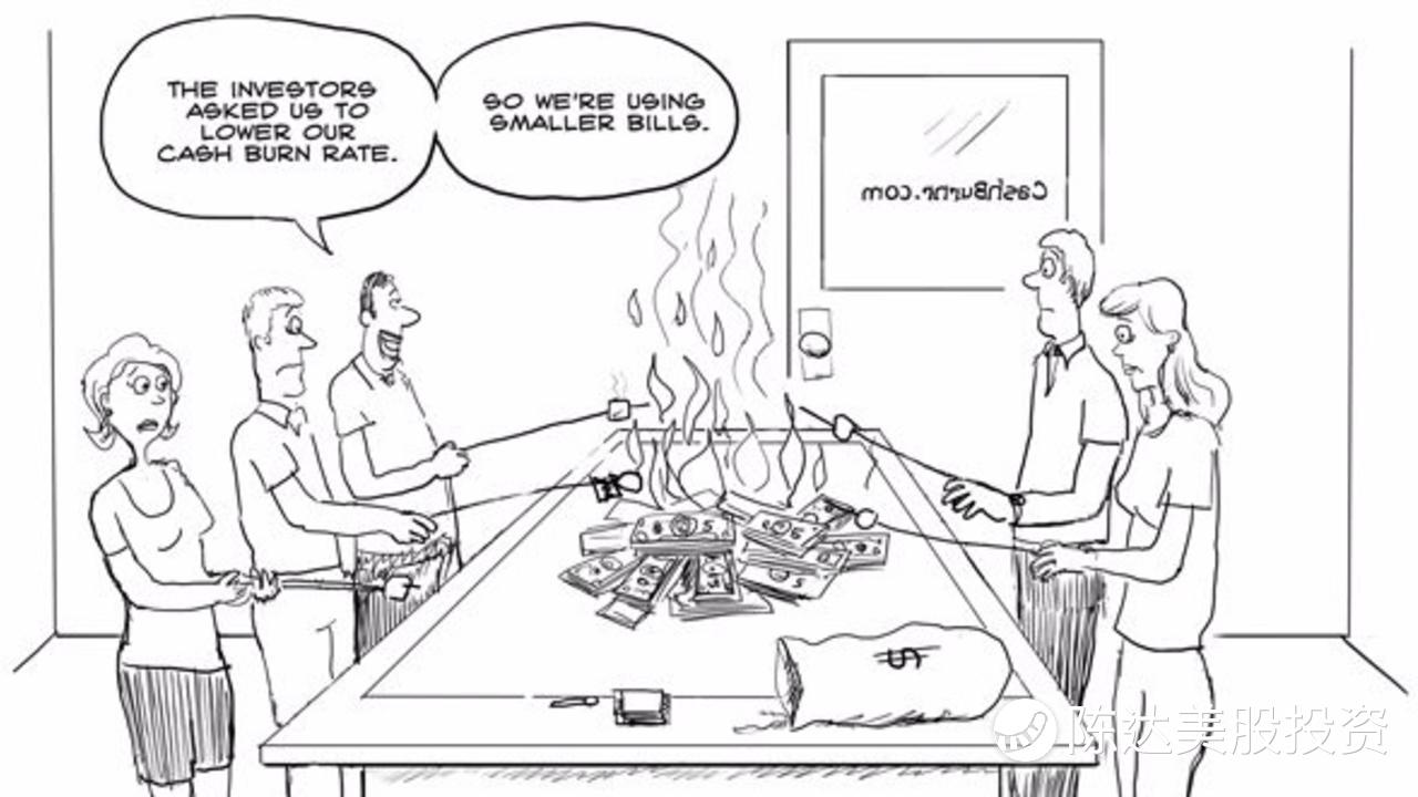 據實驗證明,在常溫常壓下將一張百元美鈔燒成灰燼大概需要一分鐘。所以如果你一個月的燒錢速度(你的burn rate)大於432萬美元,則字面意義的燒錢已經不夠形容你糟蹋錢的速度。