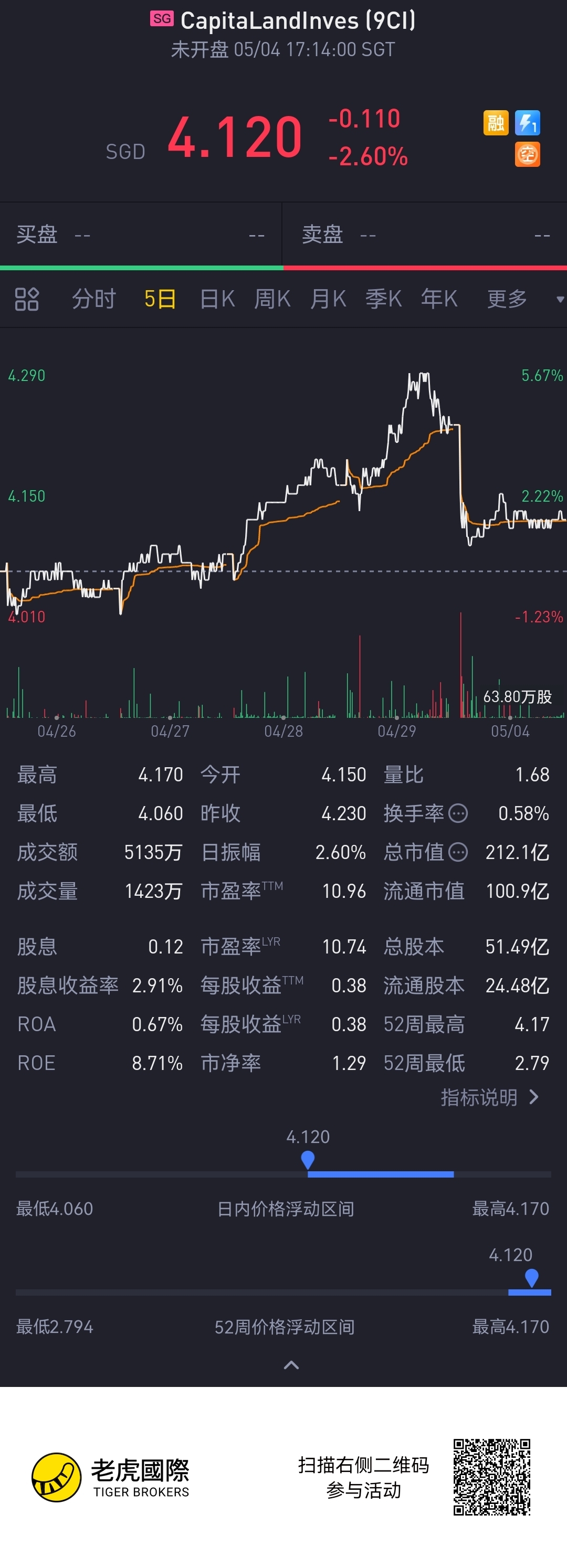 $CapitaLandInves(9CI.SI)$ share