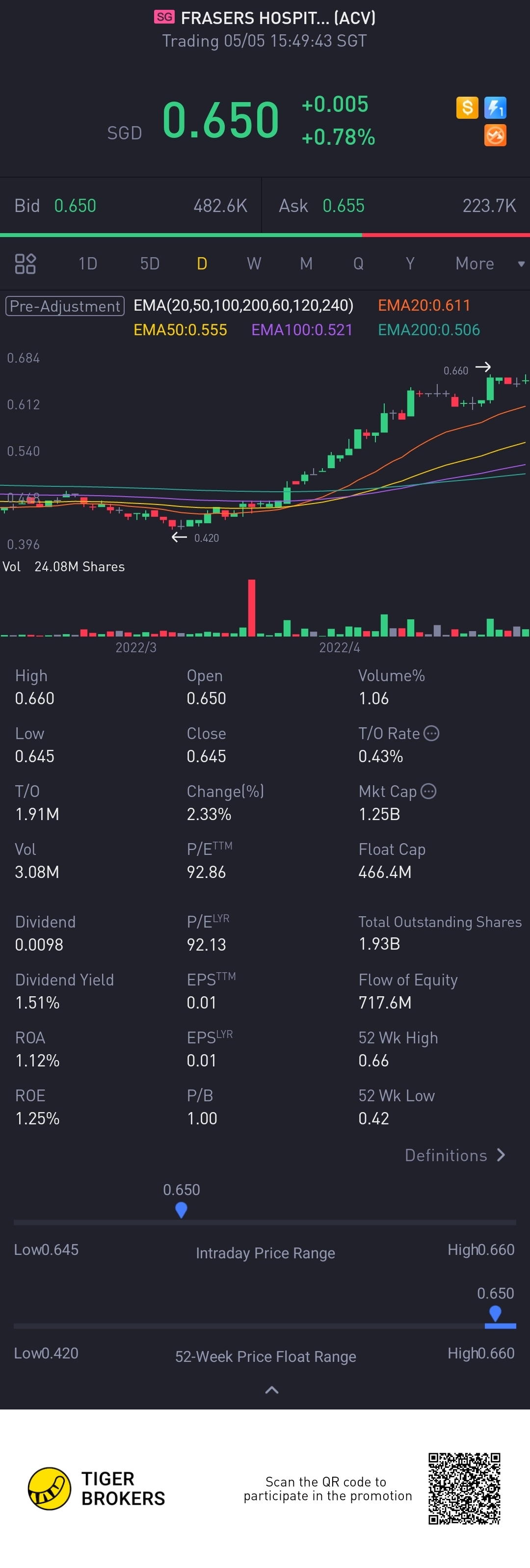 $FRASERS HOSPITALITY TRUST(ACV.SI)$chart is so nice
