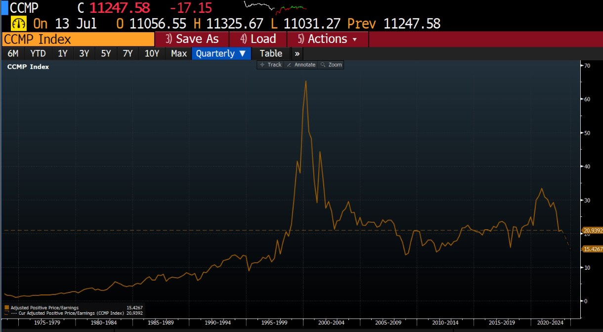 Judging from the price-earnings ratio of the $NASDAQ(.IXIC)$ index,the valuation has fallen back to the historical average, and the earnings season will come next.