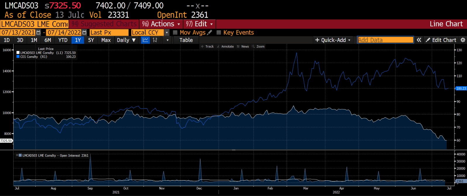 Before the CPI was released on Tuesday, commodities had already retreated sharply. Copper $Copper - main 2209(HGmain)$ futures plummeted and $Light Crude Oil - main 2208(CLmain)$ once fell below $100. The main reason for the decline was that the market was worried about an economic recession and the corresponding demand declined.