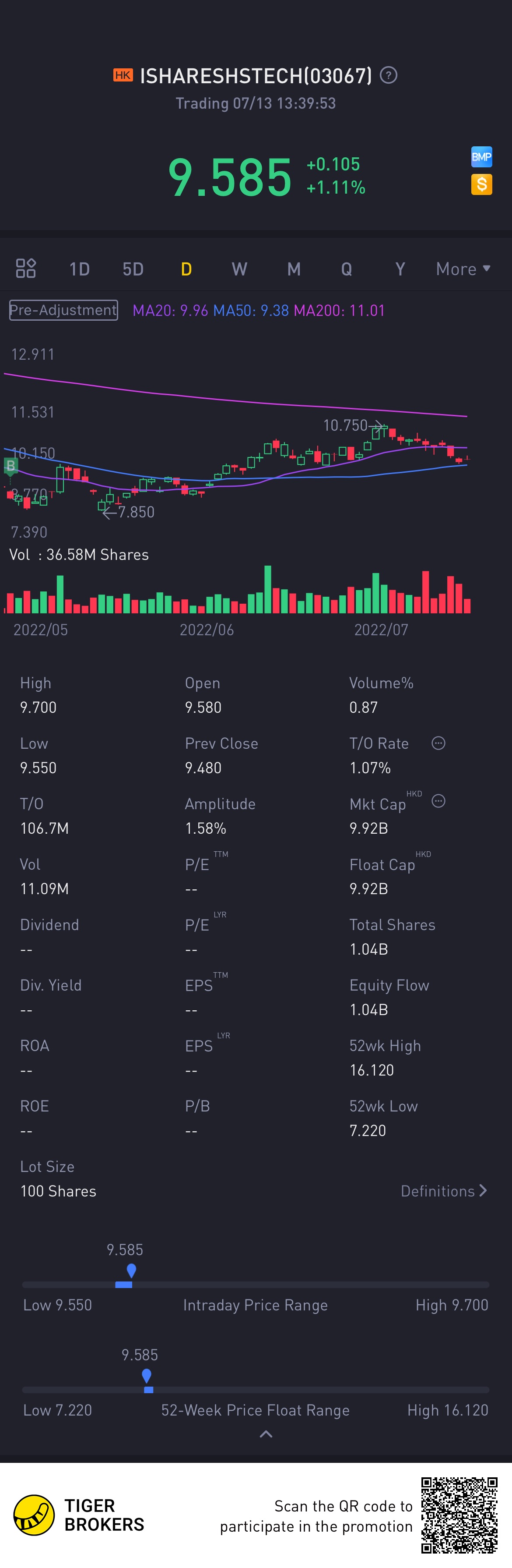 $ISHARESHSTECH(03067)$Divergences + resting on 50MA. Adding to position here