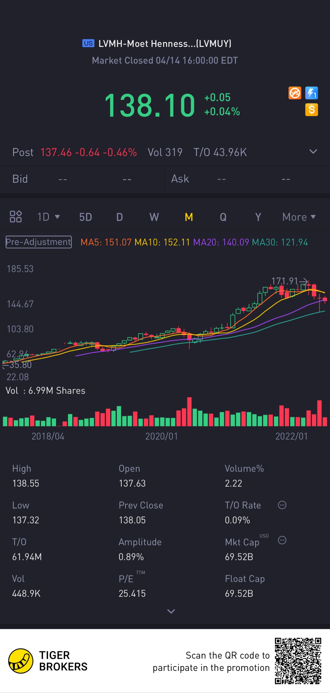 $LVMH-Moet Hennessy Louis Vuitton(LVMUY)$Up