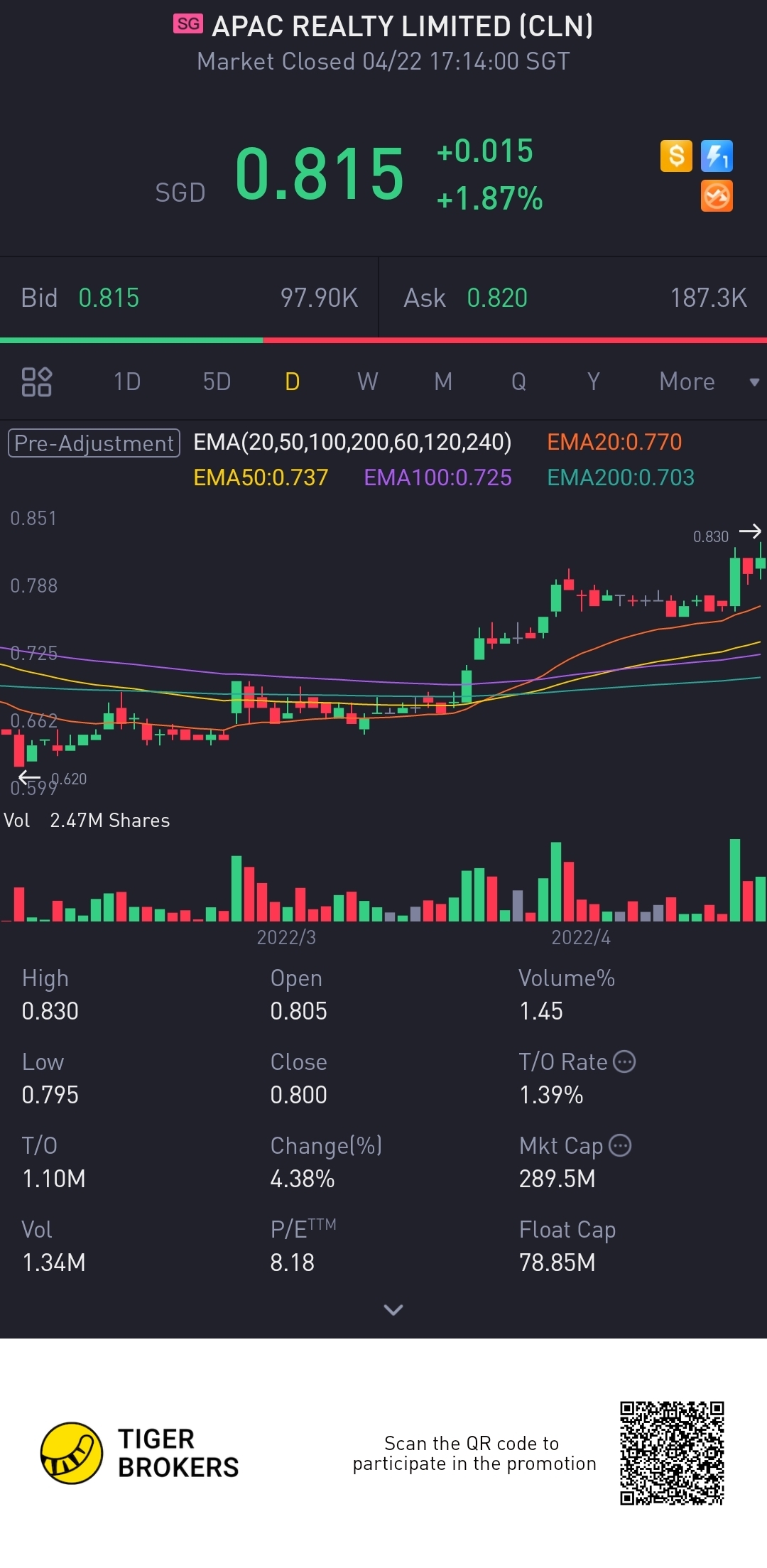 $APAC REALTY LIMITED(CLN.SI)$looking good