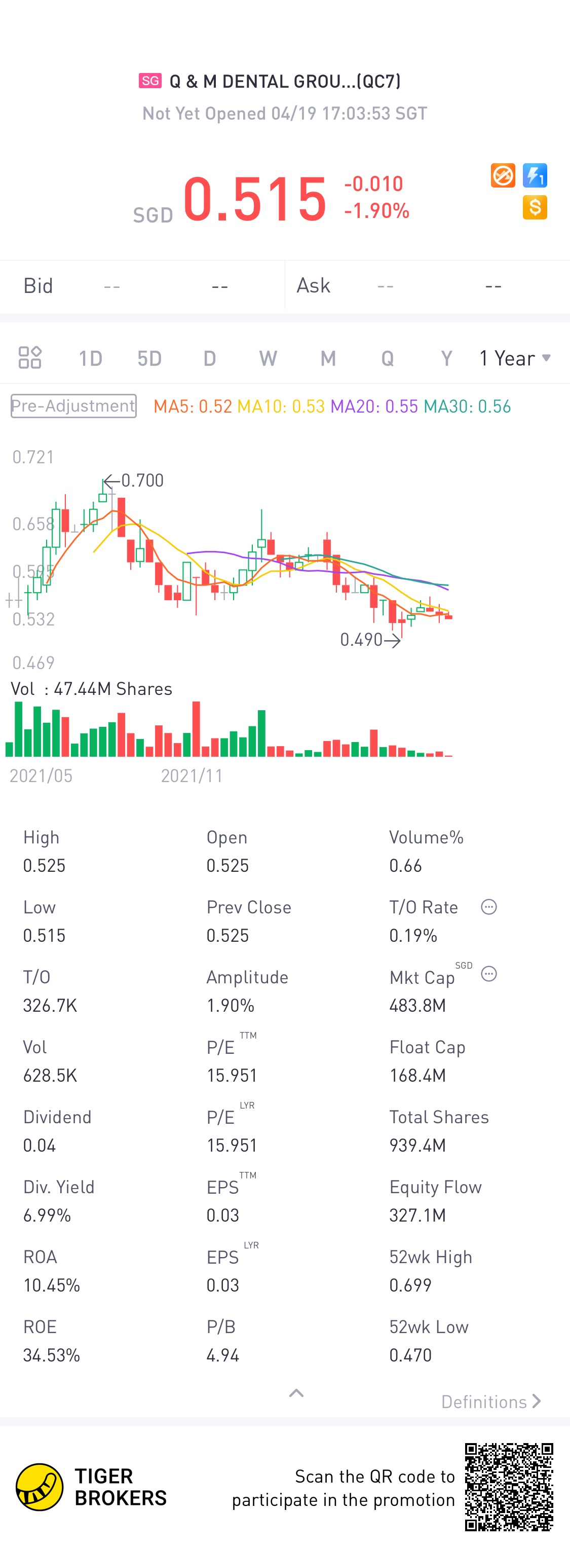 $Q & M DENTAL GROUP (S) LIMITED(QC7.SI)$Good dividend yield with good ROE. Worth to buy