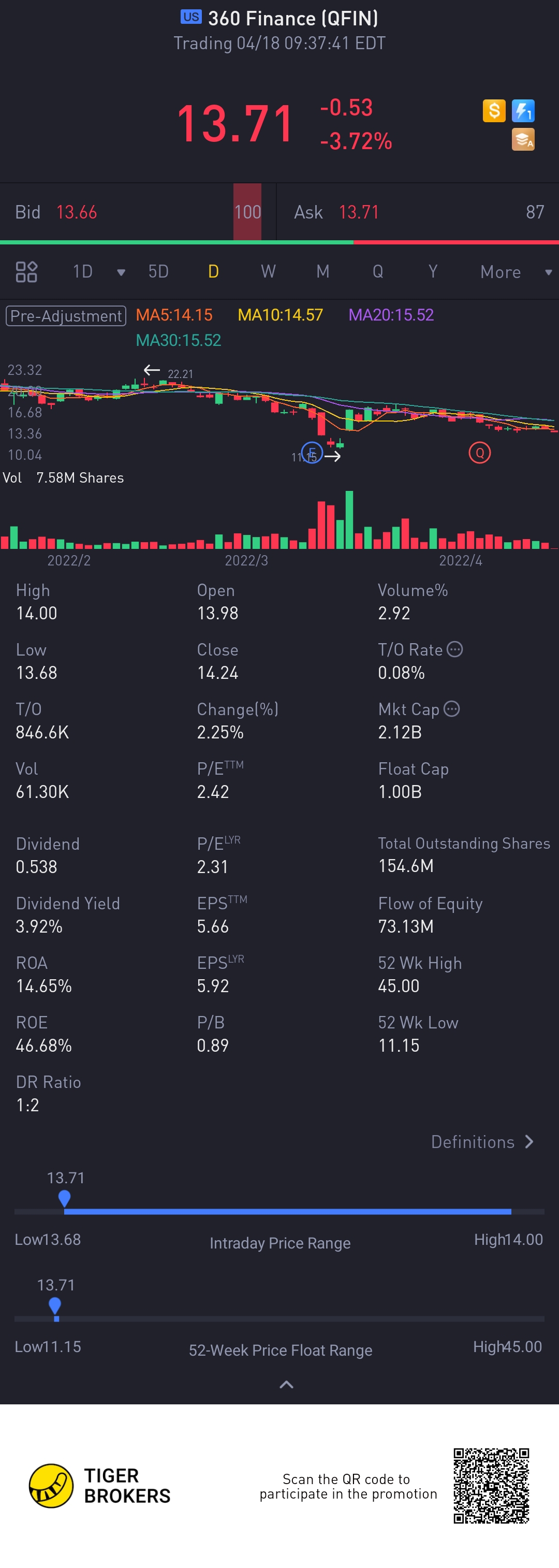 $360 Finance(QFIN)$plz bring it down below 12 so I can average down again [Happy]