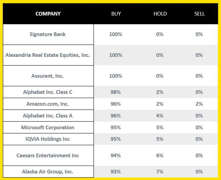 Highest % of Buy Ratings in S&P 500: Top 10 (Source: FactSet)