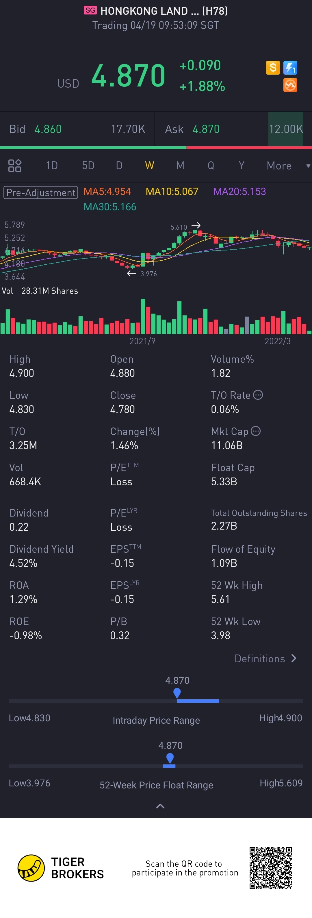 $HONGKONG LAND HOLDINGS LIMITED(H78.SI)$hold 2 years
