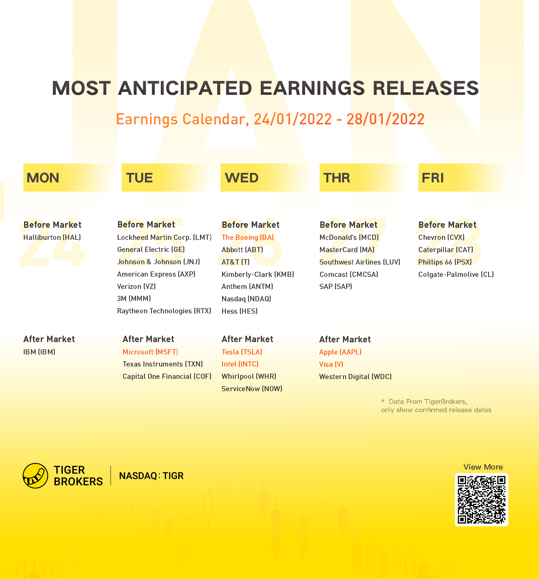 Earnings: $Boeing(BA)$, $Intel(INTC)$, $Tesla Motors(TSLA)$, $AT&T Inc(T)$, $Abbott Laboratories(ABT)$, $Xilinx(XLNX)$, $ServiceNow(NOW)$