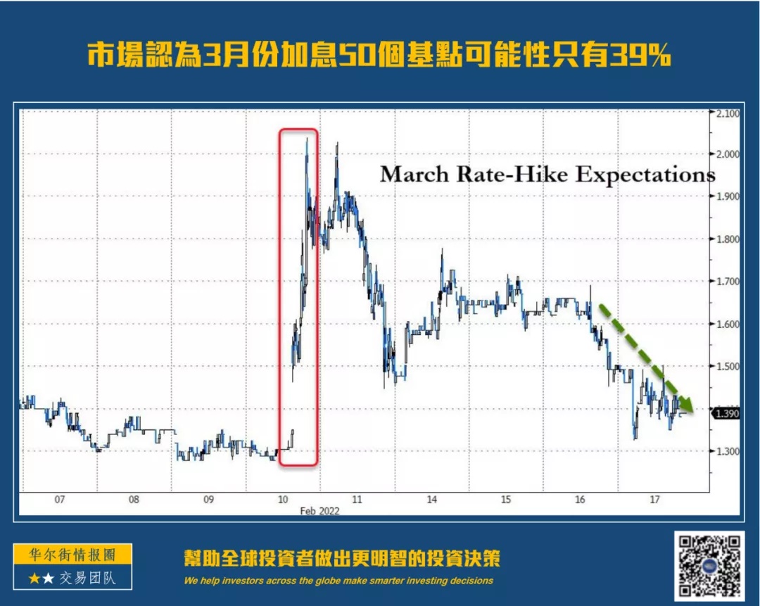 At present, the market expects that the possibility of raising interest rates by 50 basis points in March has dropped to about 40% (it was 60% a day ago).