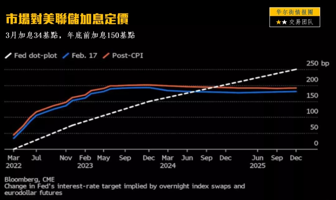 Overnight Index Swap (OIS), which is linked to the time of the Fed's interest rate meeting in March, expects the federal funds target rate to be about 34 basis points higher than the current real effective rate of 0.08%. Since the Fed usually raises interest rates in multiples of 25 basis points, OIS prices indicate that traders believe that at least 25 basis points will definitely be increased in March, but the probability of 50 basis points is only about 40%.