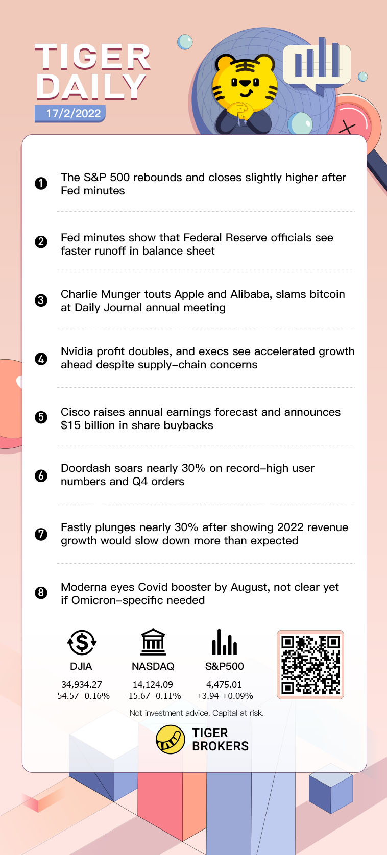 - The S&P 500 closed flat after volatile trading Wednesday as investors surveyed the latest update from the Federal Reserve and the status of Russia’s military build-up near Ukraine.